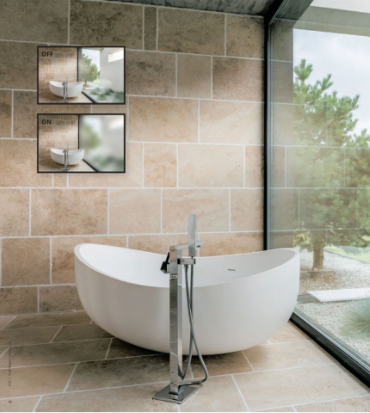 Teljesen átlátszó üvegből gombnyomásra tejüveget varázsolhatunk!Továbbá matt üveg felületének arányát is tetszőlegesen változtathatjuk.